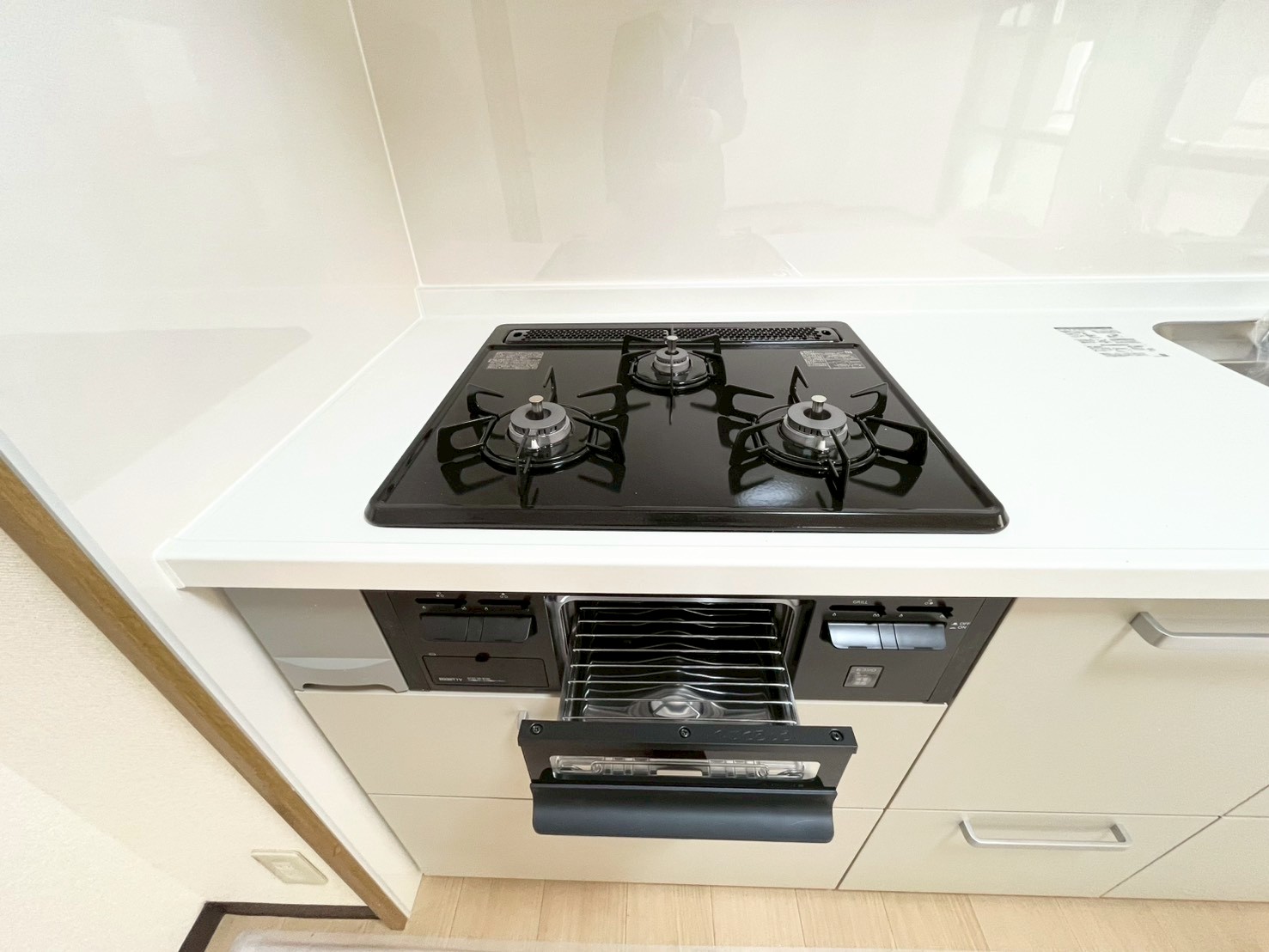 賃貸では珍しい「3口ガスキッチン(グリル付)」を完備。家事効率を上げる浴室乾燥機や、寒い冬に嬉しい追炊き機能、清潔感のある独立洗面台など、分譲マンションに引けを取らない水回り設備が揃っています。