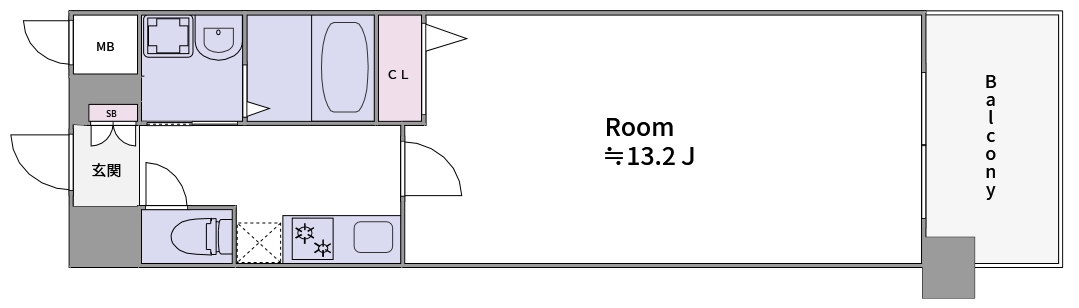 【1Kの常識を超える13.2帖の大空間】